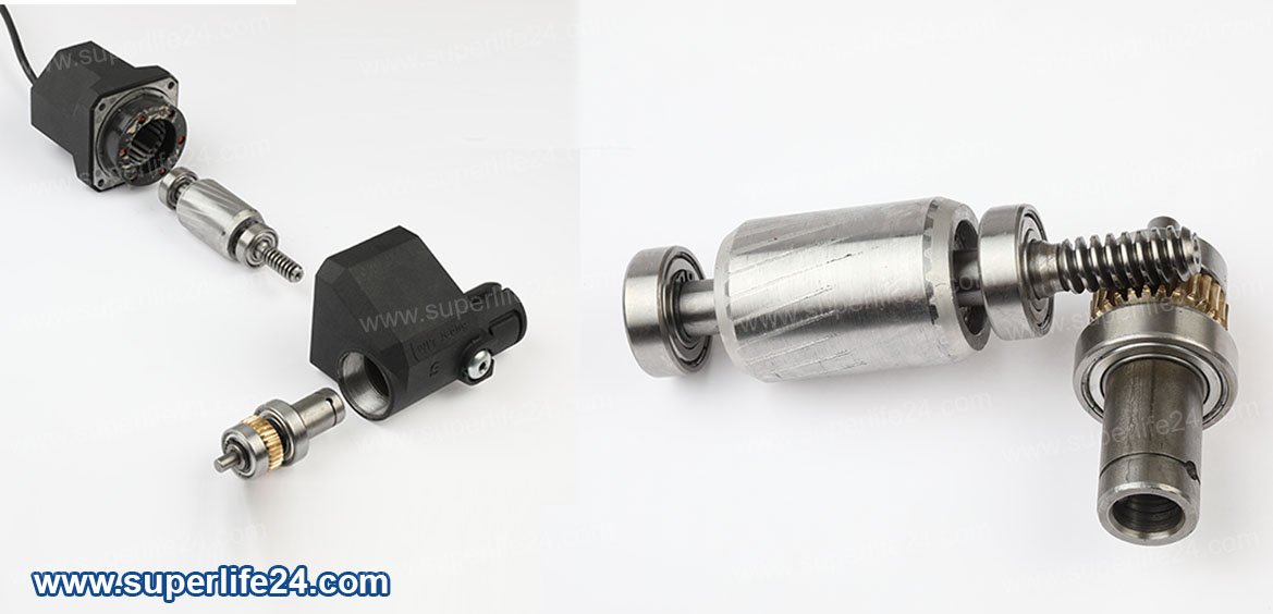 موتور : وظیفه موتور تامین نیرو جهت به باز و بسته کردن درب پارکینگ می باشد که هر نوع جک برقی داشته باشید موتور قطعه ی اصلی محسوب می شود چراکه نیروی برق از طریق موتور تامین می شود میزان توان موتور بستگی به وزن درب و تک لنگه یا دو رنگه بودن آن بستگی دارد.